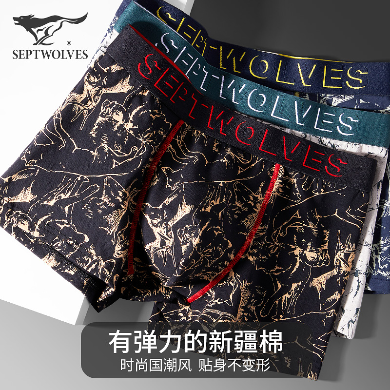 【产品名称:七匹狼男士纯棉内裤男个性潮流平角裤透气四角裤男生短裤全棉裤头】