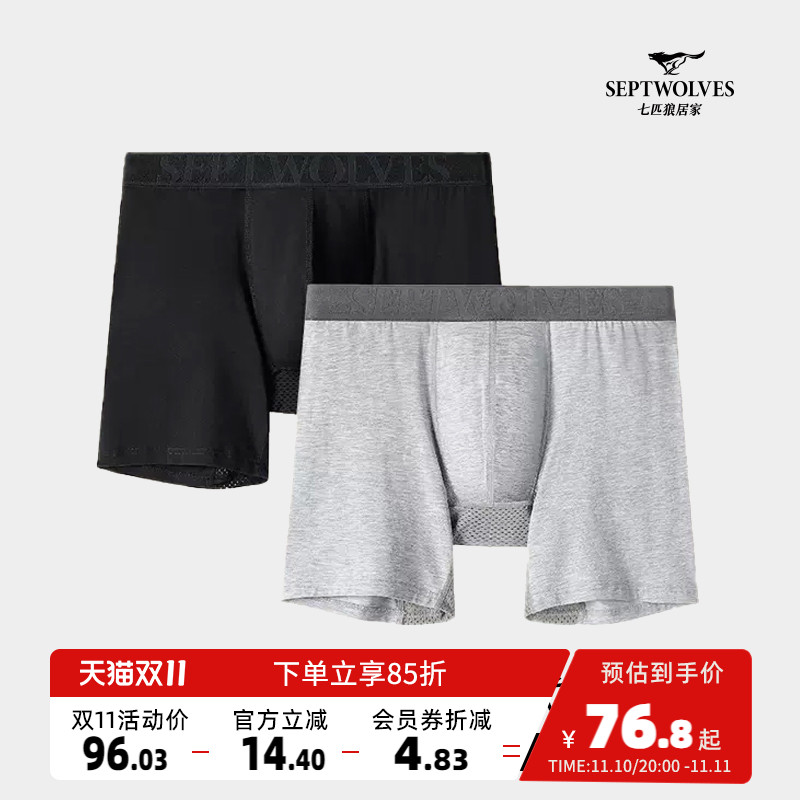 【产品名称:七匹狼男士莫代尔棉明筋净色抗菌长款平角裤内裤加长运动款四角裤】