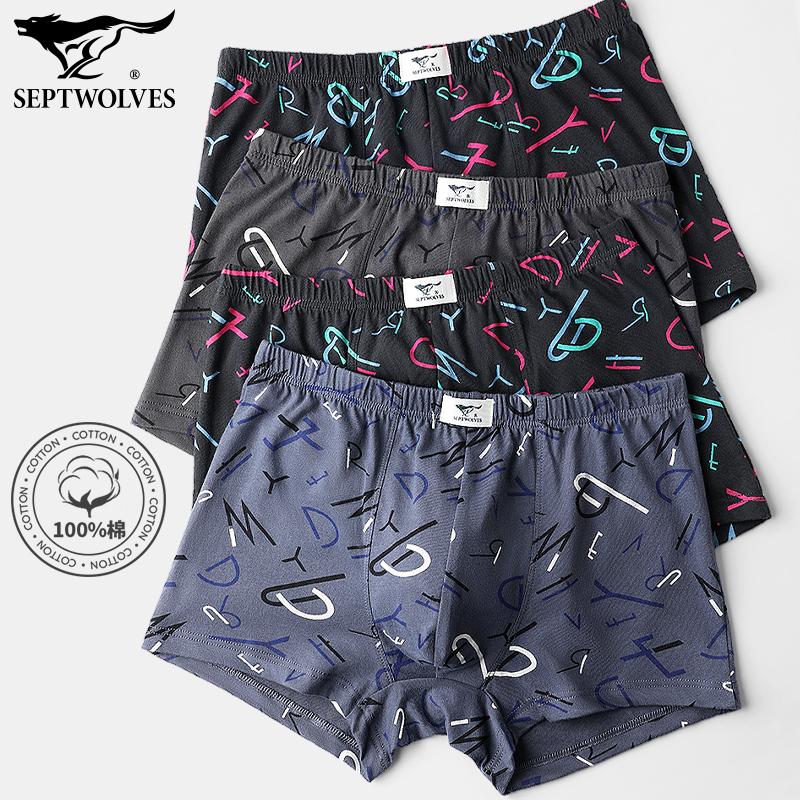 【产品名称:七匹狼男土内裤四角裤纯棉初高中学生青少年全棉宽松透气潮流个性】
