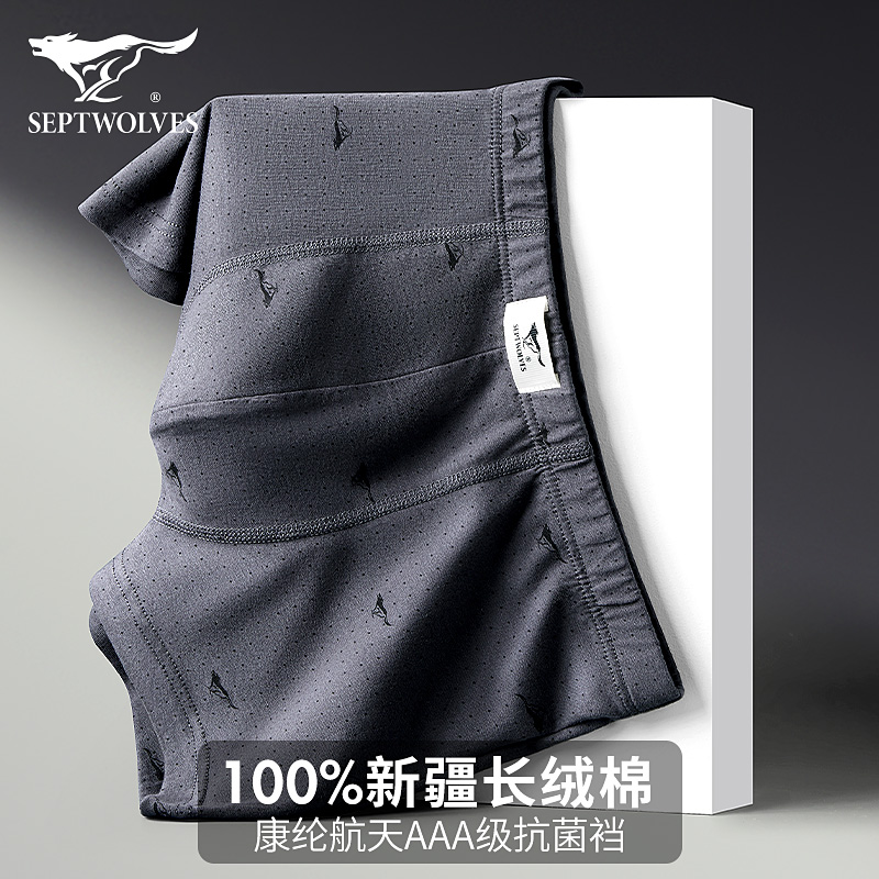 【产品名称:七匹狼2022年新款男士内裤男100%纯棉平角裤薄款透气抗菌裆四角裤】