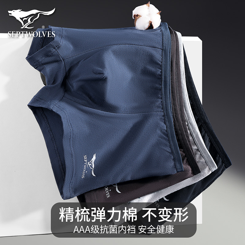 【产品名称:七匹狼内裤男生纯棉四角短裤男士弹力棉运动透气平角裤男中年裤头】