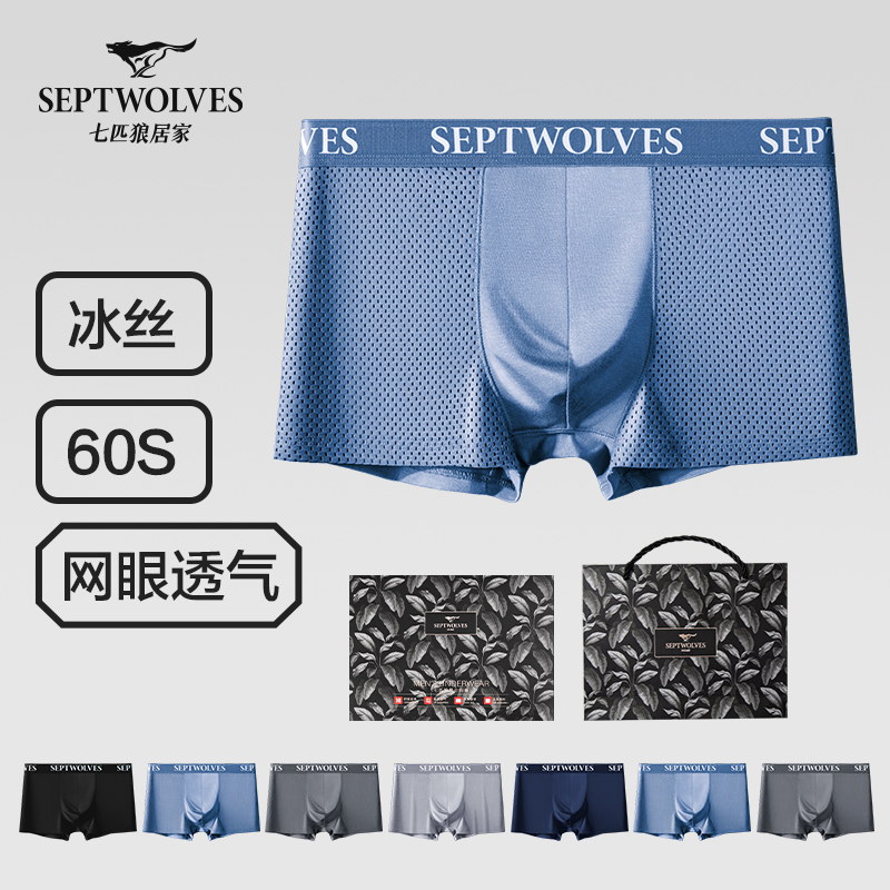 【产品名称:七匹狼男士内裤男生无痕蛹蛋白抗菌高档弹力平角透气男款底裤短裤】