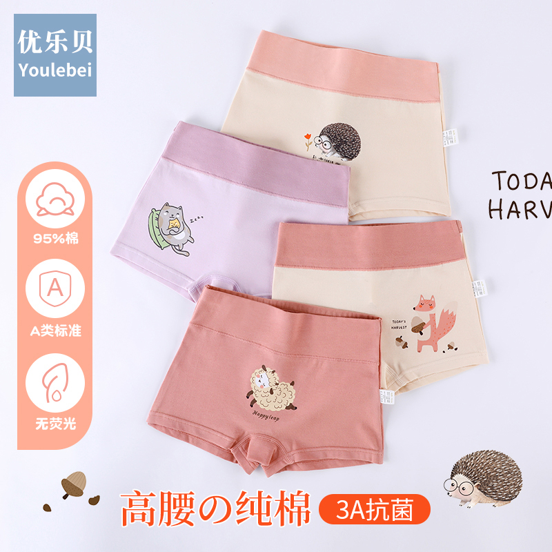 【产品名称:女童纯棉内裤儿童高腰平角小女孩四角全棉短裤宝宝三角中大童裤头】