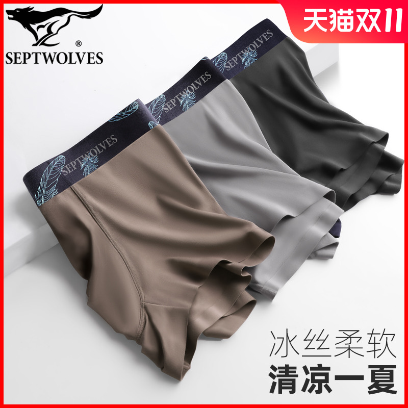 【产品名称:七匹狼锦纶冰丝内裤男士抗菌无痕印花眀筋时尚腰带男人老公四角裤】