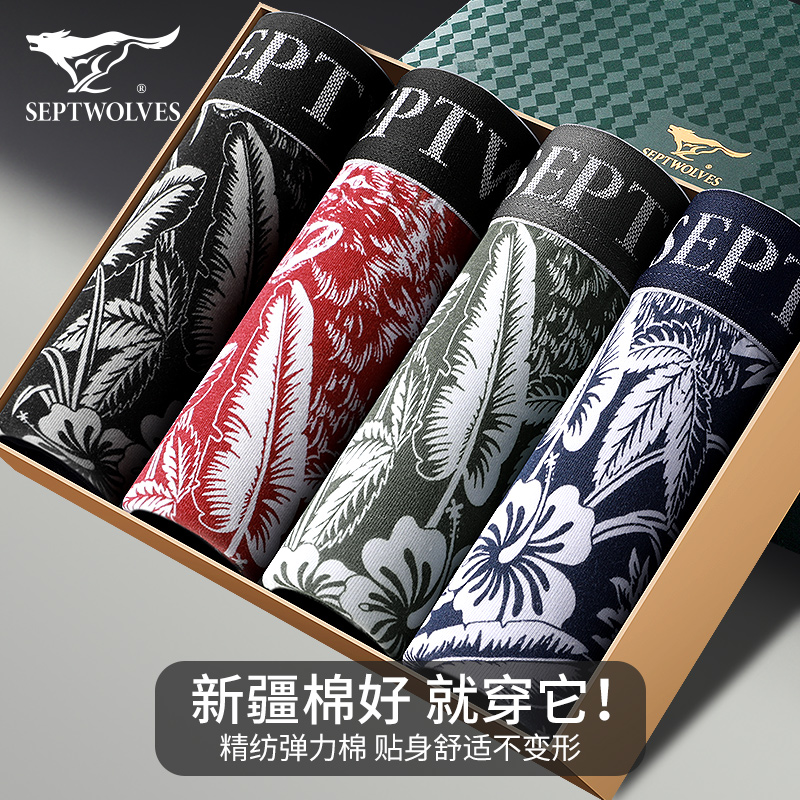 【产品名称:七匹狼男士纯棉内裤四角短裤头男生平角裤底裤透气薄款裤衩花卉男】