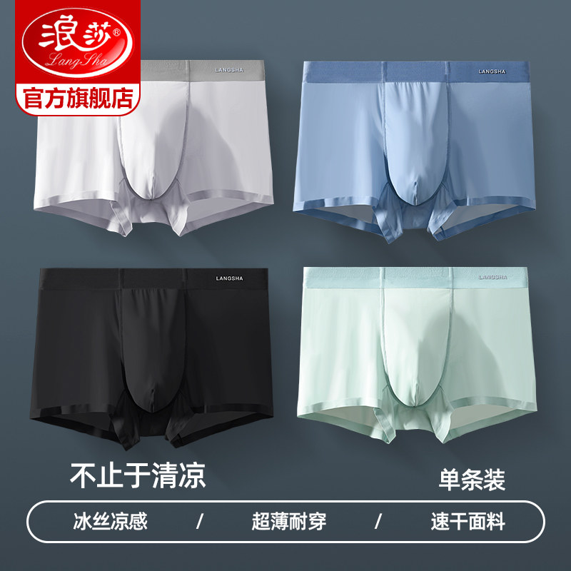 【产品名称:浪莎男士内裤男生冰丝四角无痕夏季薄款透气宽松3A抗菌裆平角短裤】
