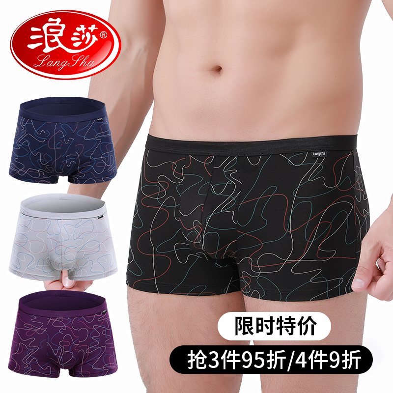 【产品名称:浪莎男士内裤男生平角短裤竹纤维冰丝夏季青少年透气裤衩四角裤头】