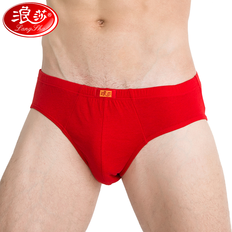 【产品名称:2条浪莎纯棉男士内裤大红内裤男本命年鼠结婚短裤透气全棉三角裤】
