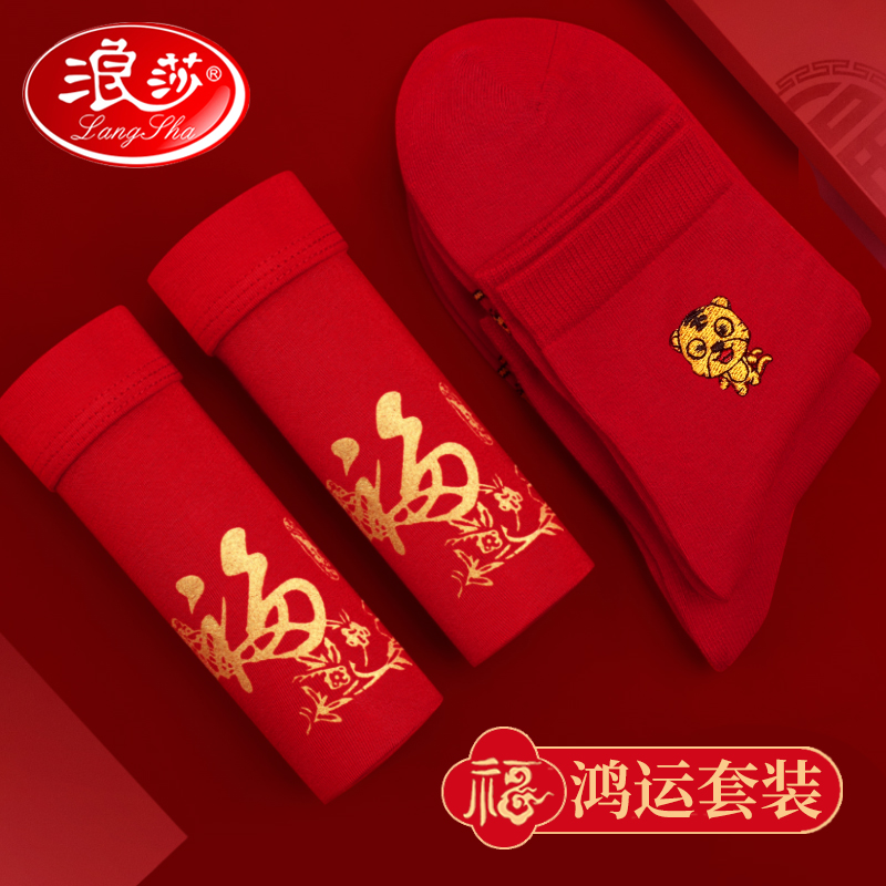 【产品名称:男士红内裤本命年袜子纯棉属虎组合平角红色四角短裤礼物虎年套装】