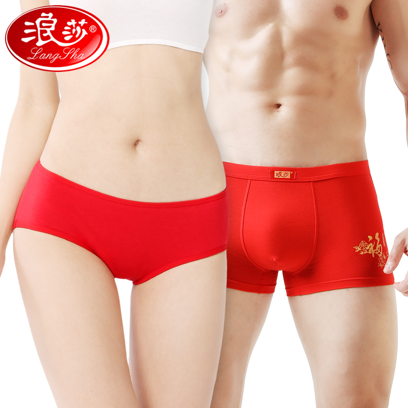 【产品名称:红内裤结婚情侣一对新婚纯棉浪莎男士红色平角裤本命年女结婚牛年】