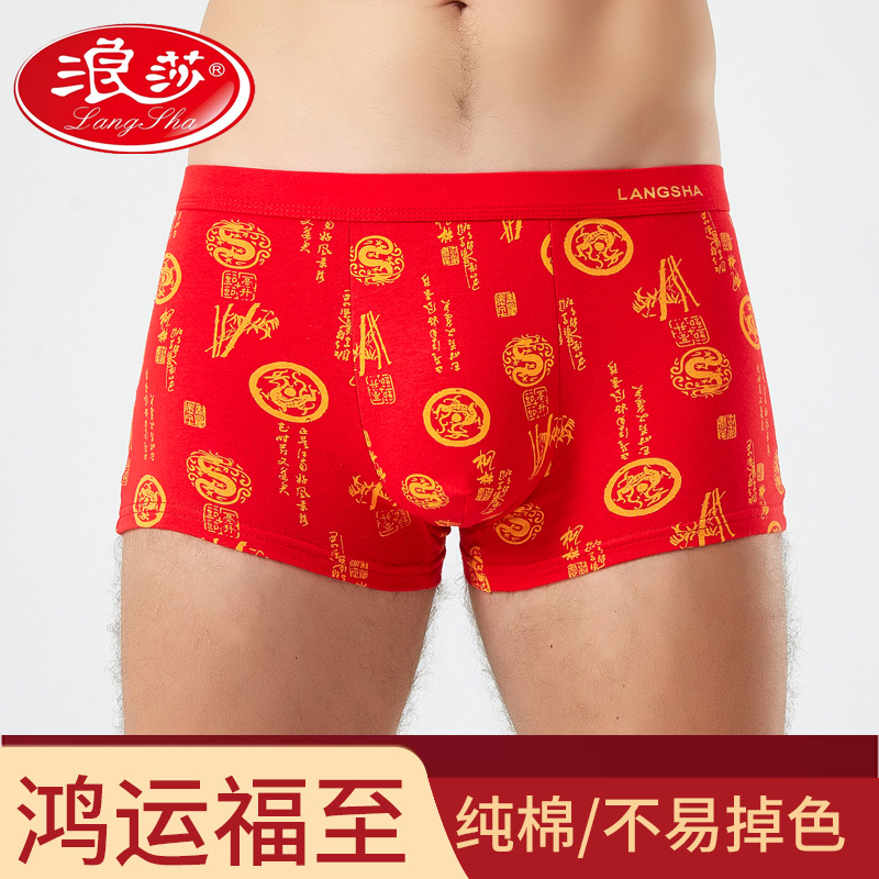 【产品名称:浪莎男士内裤纯棉本命年大红色结婚礼物鸿运四角短裤平角裤属龙年】