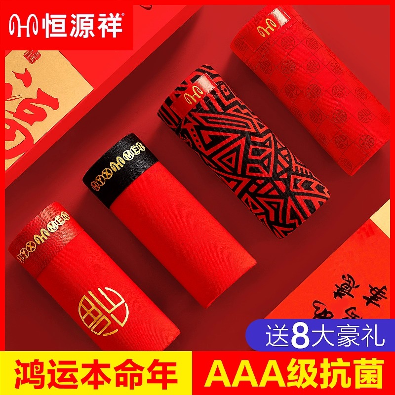 【产品名称:恒源祥本命年男士纯棉内裤男生大码四角属虎年红色结婚平角短裤头】