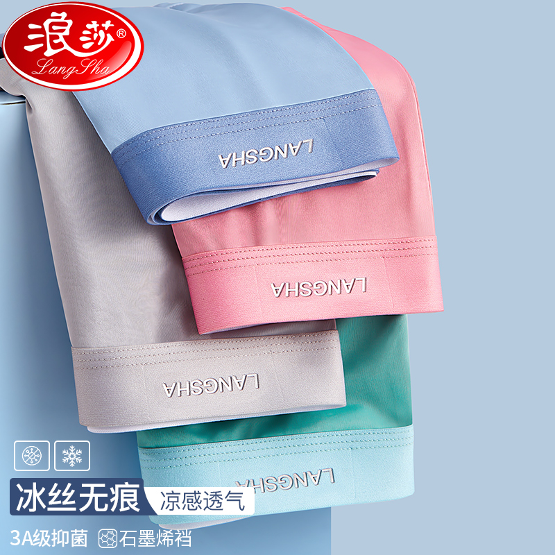 【产品名称:浪莎内裤男生冰丝平角裤无痕薄款运动抗菌裆四角短裤透气裤衩夏季】