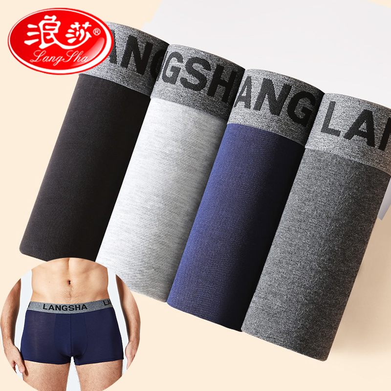 【产品名称:浪莎4条浪莎内裤男平角裤莫代尔冰丝薄款透气四角短裤青年底裤衩】
