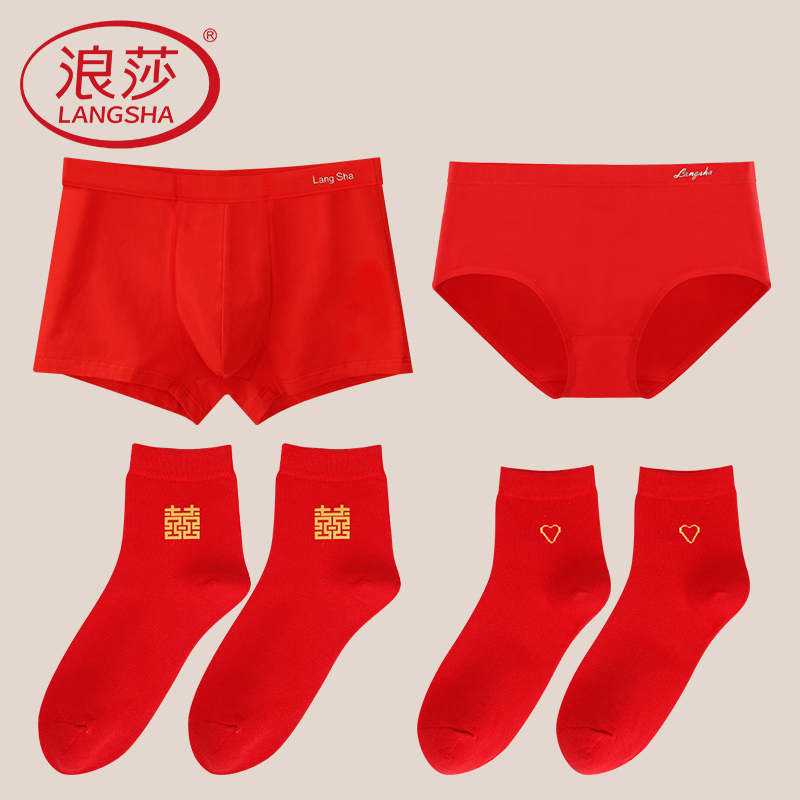 【产品名称:浪莎红内裤结婚情侣一对一男一女红色本命年内衣龙年纯棉新郎裤衩】