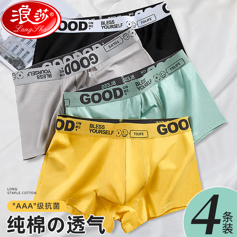 【产品名称:浪莎男士内裤纯棉宽松男生透气平角裤头男孩青少年潮流四角短裤衩】