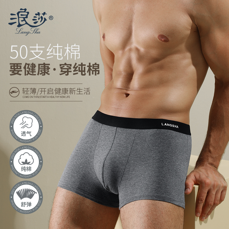 【产品名称:浪莎男士内裤纯棉平角裤春夏季全棉四角裤青年男生薄款透气短裤衩】