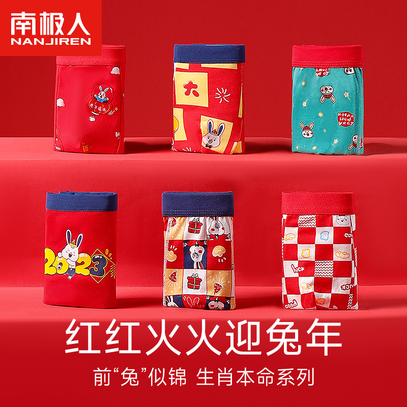 【产品名称:儿童红色内裤男童本命年四角纯棉短裤中大童12男孩13岁兔年平角裤】