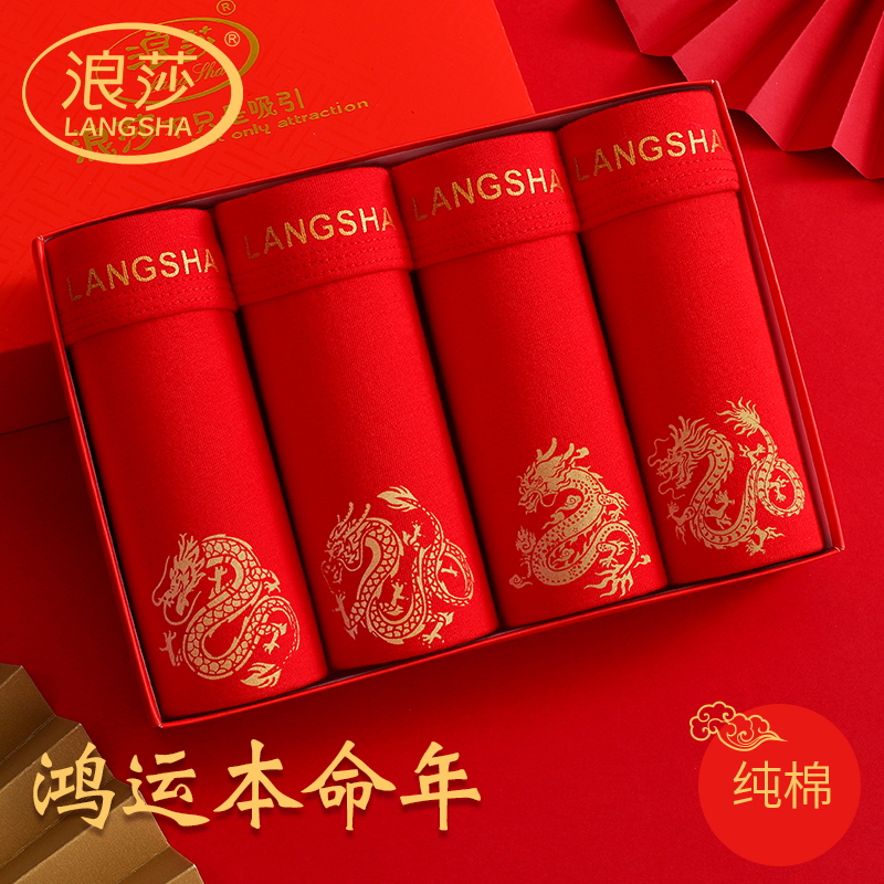 【产品名称:浪莎龙年本命年男士内裤男纯棉四角裤大红色全棉短裤男生属龙礼物】