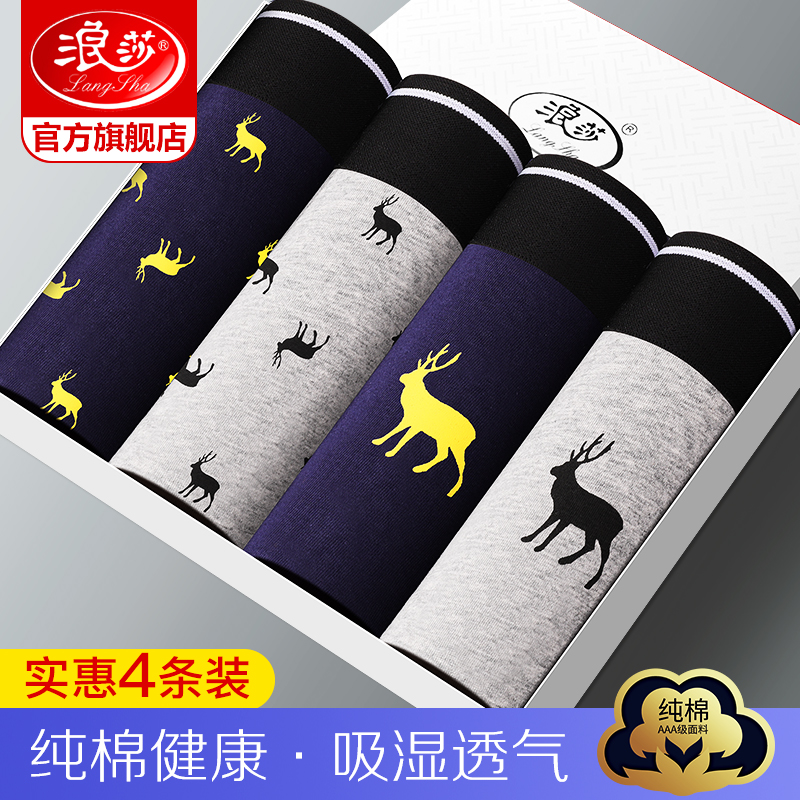 【产品名称:浪莎男士内裤男平角裤纯棉透气潮流时尚青年短裤裤衩四角底裤头】