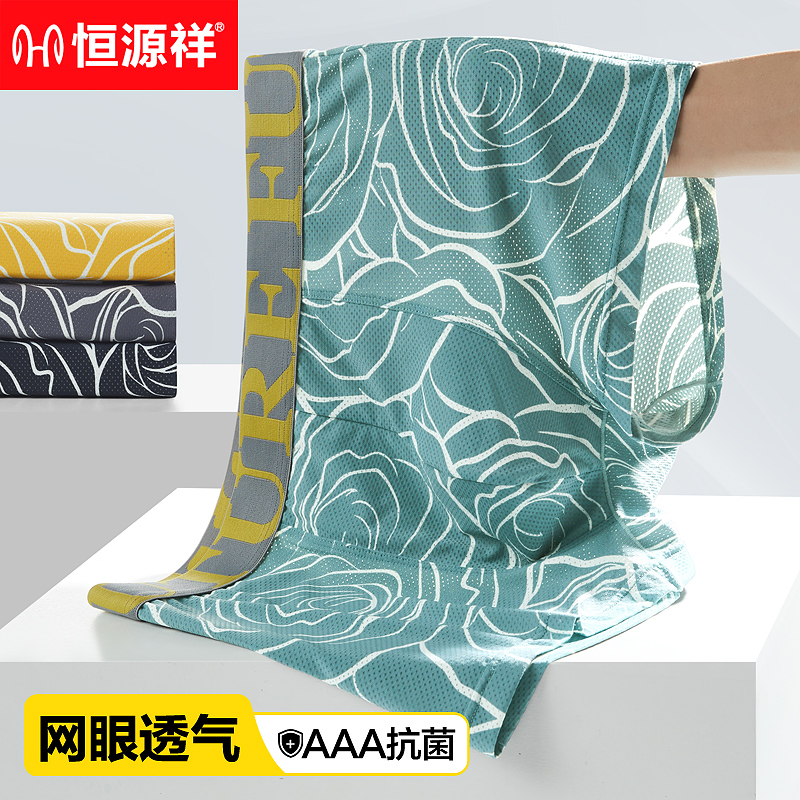 【产品名称:恒源祥男士内裤冰丝无痕夏季网眼薄款纯棉裆抗菌平角男生透气四角】