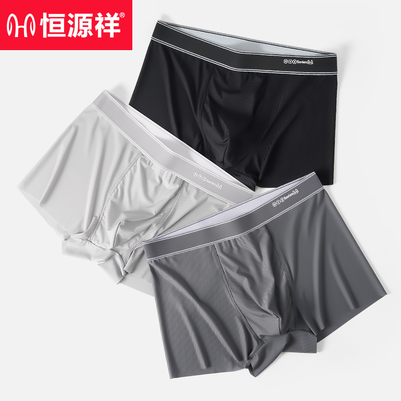 【产品名称:恒源祥男士内裤平角冰丝无痕网眼抗菌透气四角短裤男生纯棉裆大码】