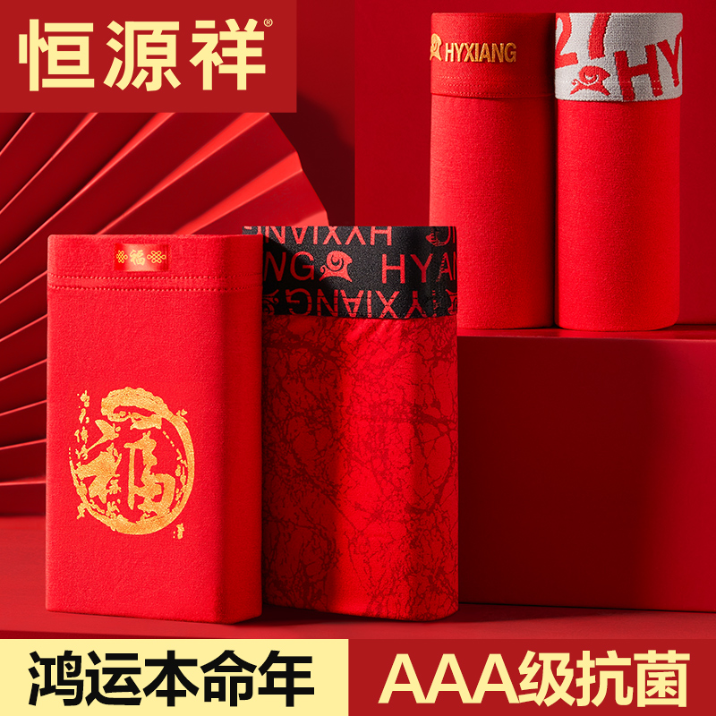 【产品名称:恒源祥本命年男士内裤男生平角裤纯棉大红色礼物结婚兔年四角短裤】