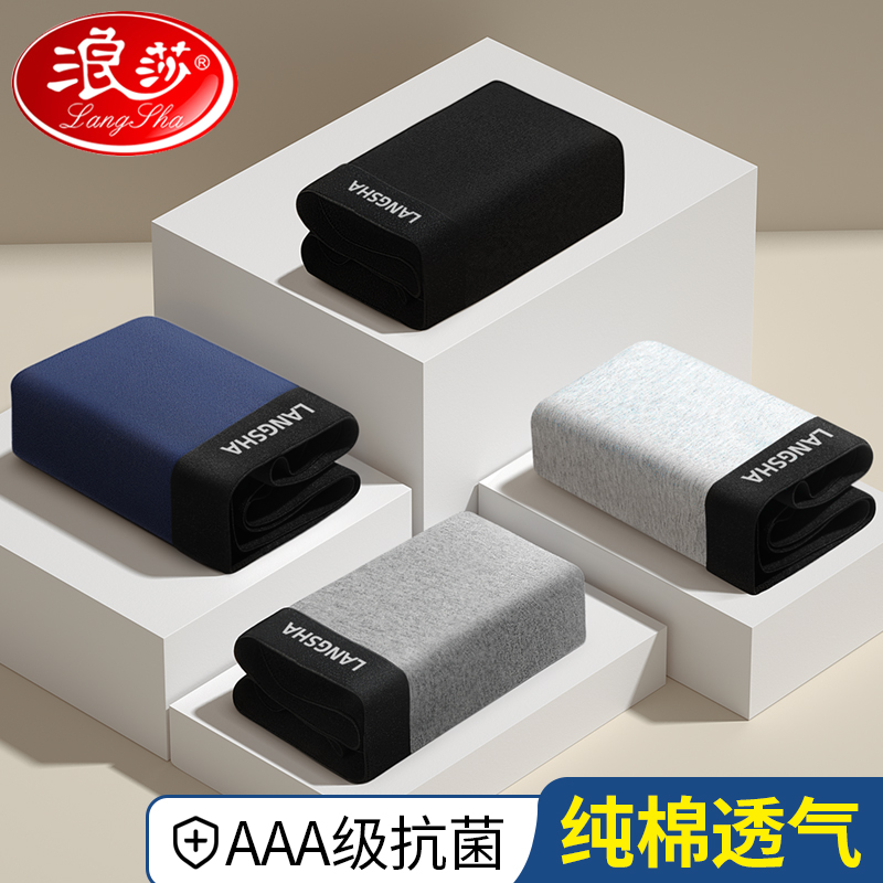 【产品名称:浪莎内裤男士冬季款纯棉2021年新款全棉四角青少年宽松男生平角裤】