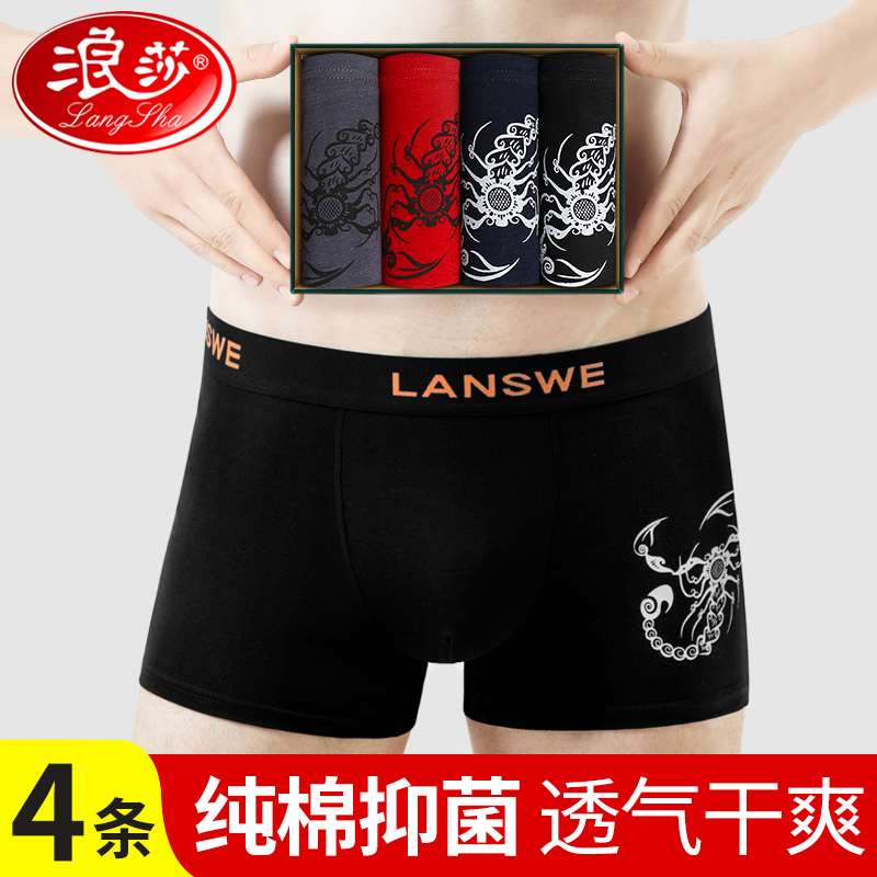 【产品名称:浪莎内裤男士纯棉无菌透气100%全棉四角裤大码宽松男生青少年短裤】
