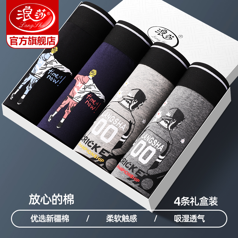 【产品名称:浪莎男士内裤青年印花时尚纯棉透气潮流男式平角四角高弹修身裤头】