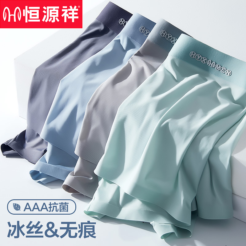 【产品名称:恒源祥男士内裤男冰丝夏季薄款透气纯棉裆抗菌平角男生四角短裤头】