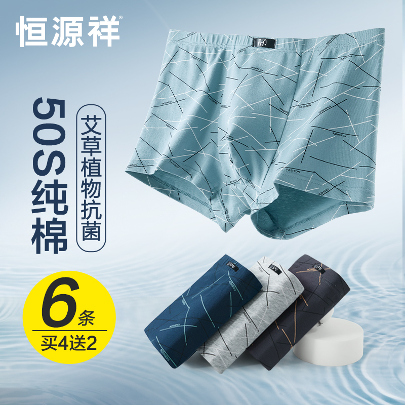 【产品名称:恒源祥男士内裤男生纯棉抗菌透气薄款夏季平角裤衩大码四角短裤头】