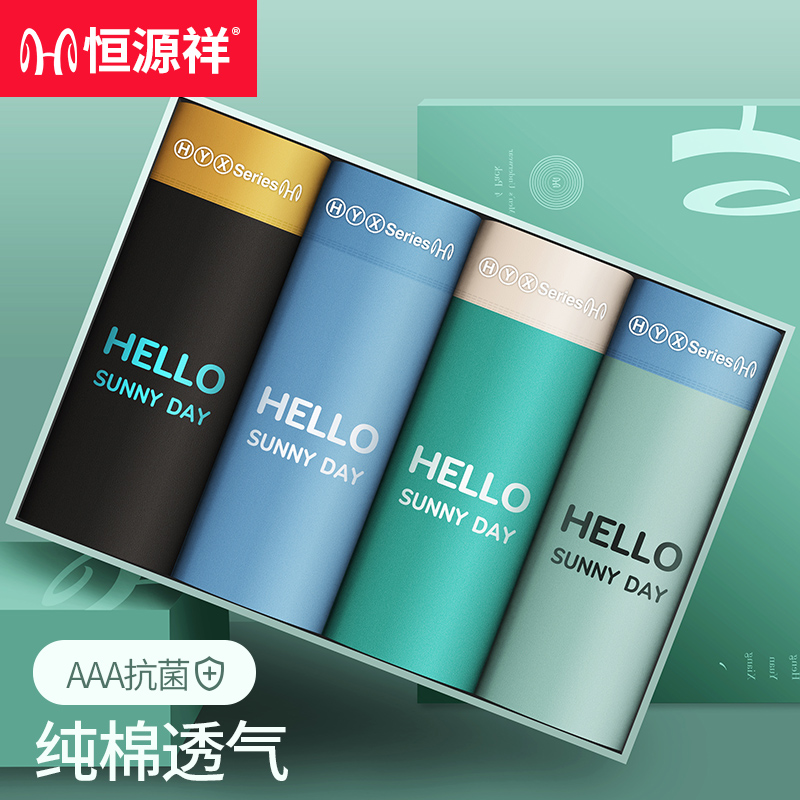 【产品名称:恒源祥内裤男纯棉一片式无痕平角裤夏季薄款抗菌裆男士短裤青少年】