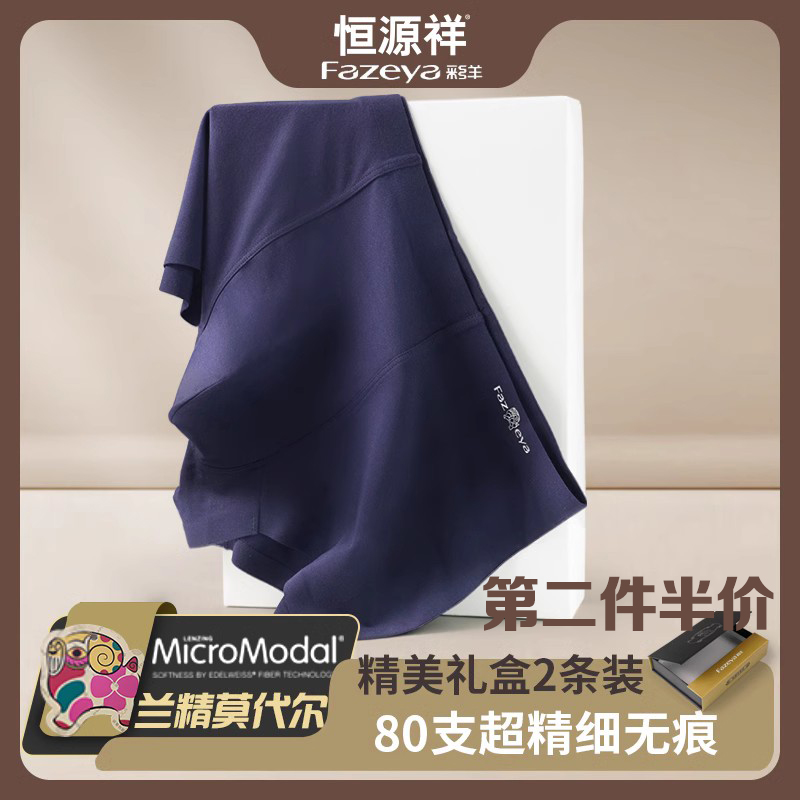 【产品名称:恒源祥彩羊兰精莫代尔内裤男冰丝无痕抗菌青年短裤夏季薄款平角裤】