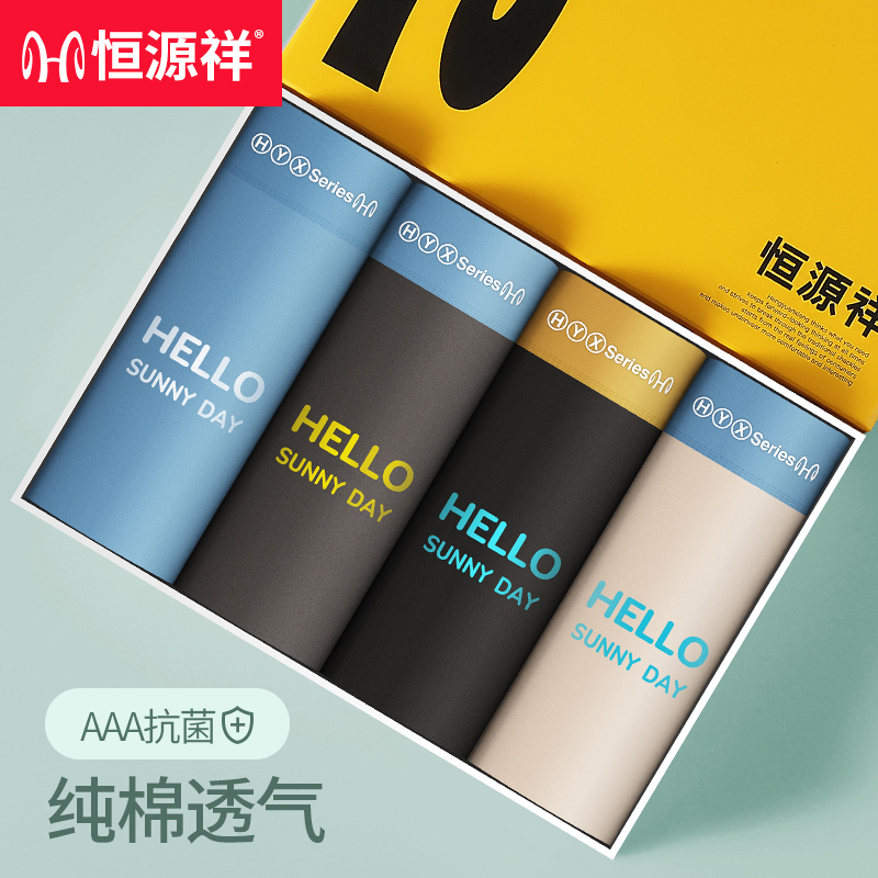 【产品名称:恒源祥内裤男士夏季纯棉吸汗无痕抗菌裆四角短裤青少年舒适平角裤】
