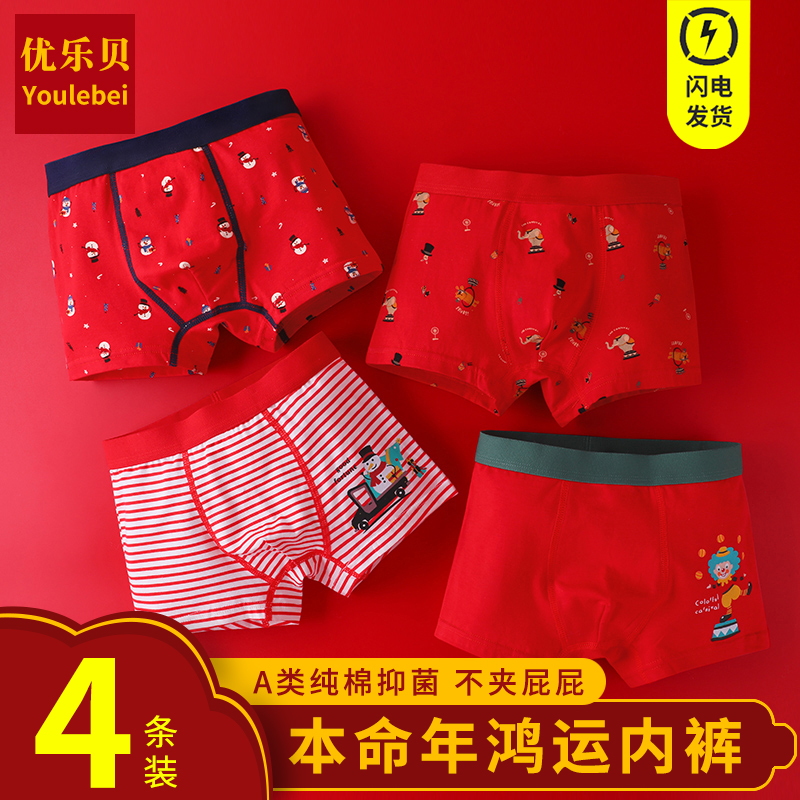 【产品名称:儿童内裤男童纯棉平角裤男孩本命年四角裤中大童13岁全棉红色短裤】