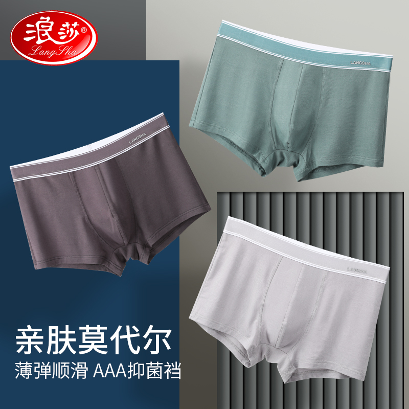 【产品名称:浪莎莫代尔内裤男四角裤纯棉裆抗菌夏季透气冰丝感男士平角短裤头】