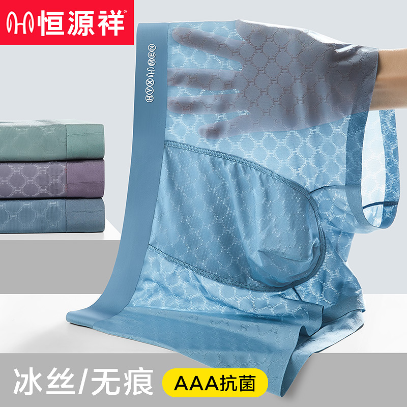 【产品名称:恒源祥男士内裤男冰丝无痕抗菌四角平角裤衩夏季透气薄款短裤男生】
