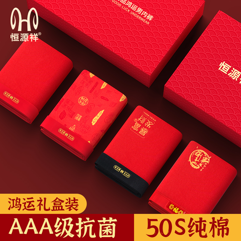 【产品名称:恒源祥男士本命年红内裤四角裤头抑菌纯棉男式裤衩透气男款短款】