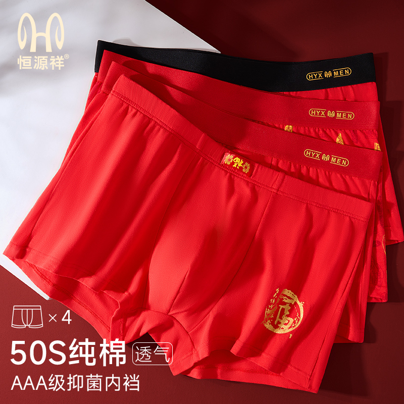 【产品名称:恒源祥本命年内裤男红色纯棉男式裤衩四角裤头男款短款透气抗菌】