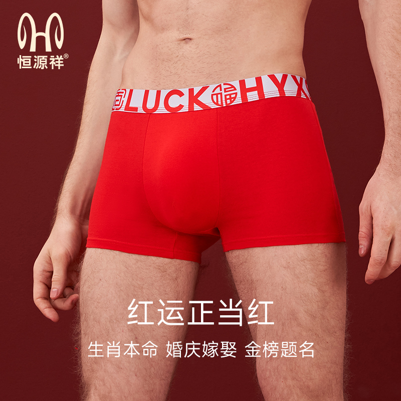 【产品名称:恒源祥男士内裤纯棉四角裤男生短裤本命年裤衩子男款大红色平角裤】