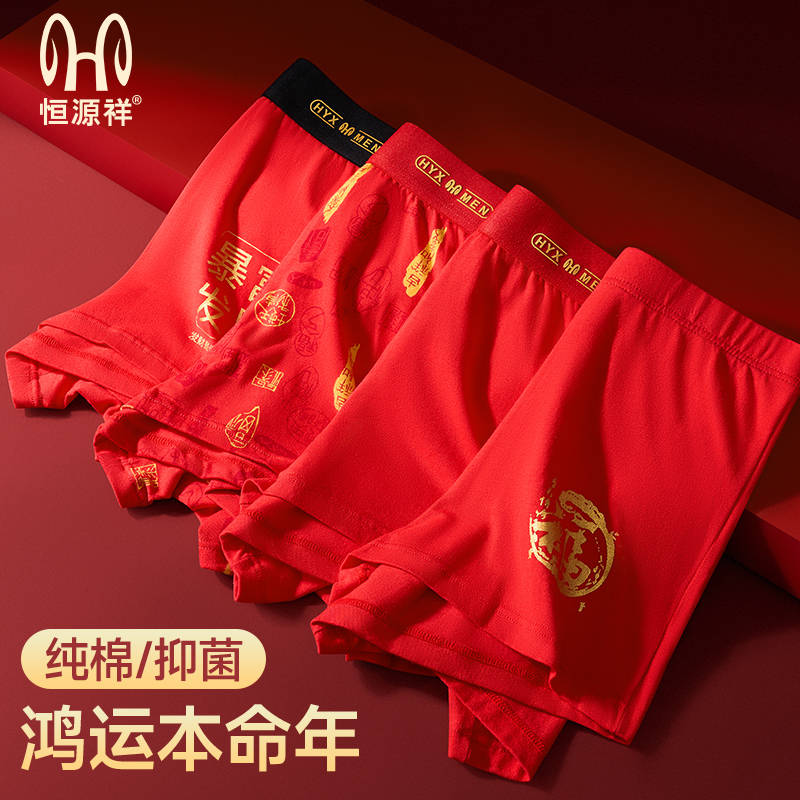 【产品名称:恒源祥本命年红内裤男士裤头男款四角裤衩抗菌透气短款抑菌吸汗】