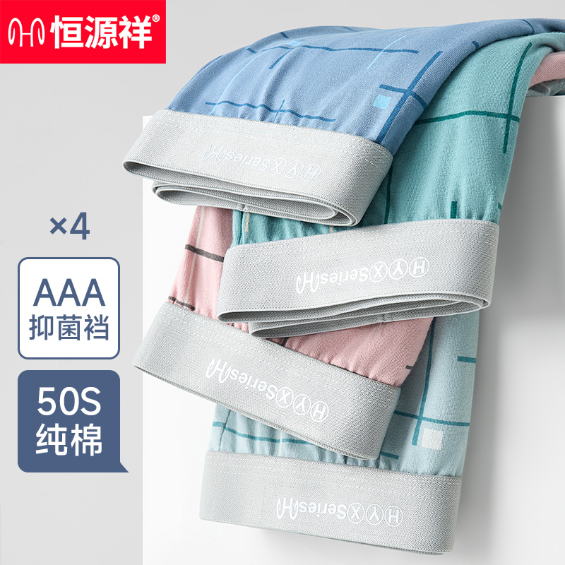 【产品名称:恒源祥男士内裤男款夏季纯棉四角裤抗菌短裤平角裤抑菌裤衩儿裤头】