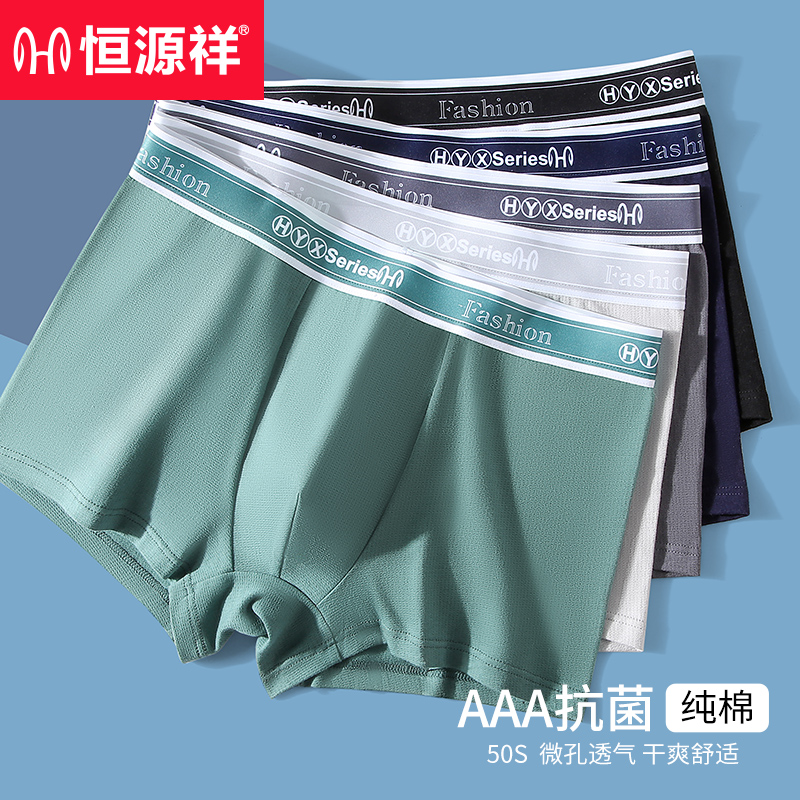 【产品名称:恒源祥男士内裤纯棉抗菌大码透气夏季四角短裤头男生薄款平角裤衩】