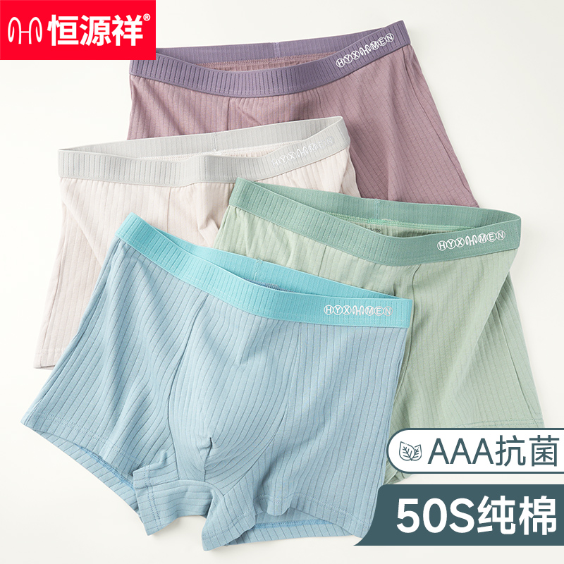 【产品名称:恒源祥男士内裤四角裤纯棉男生短裤裤头平角夏季薄款裤衩抗菌男款】