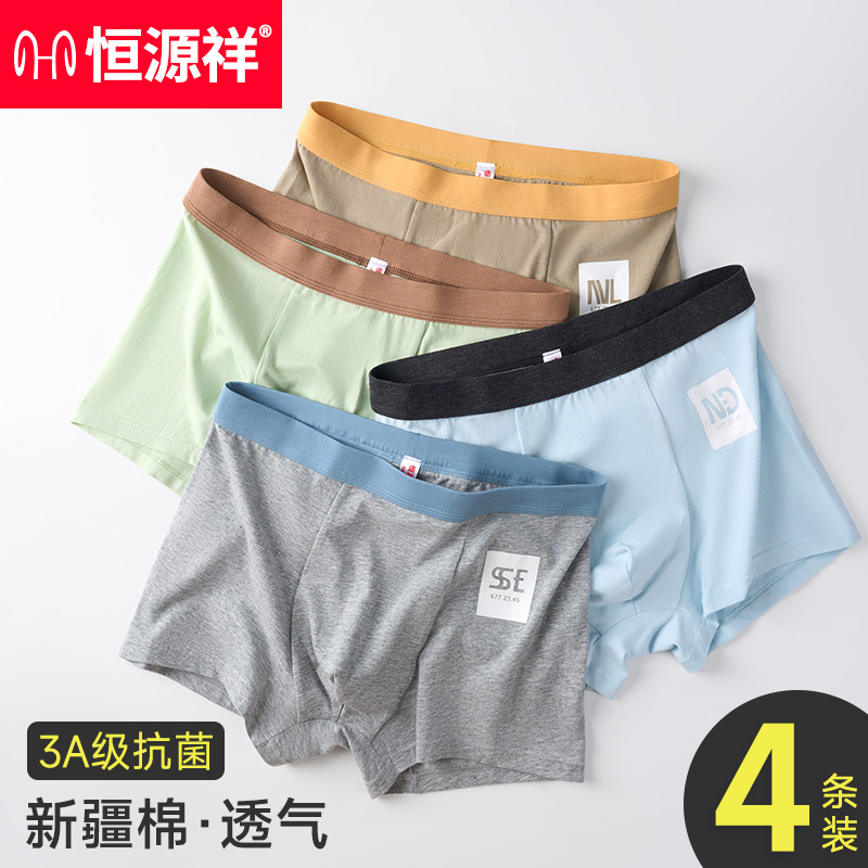 【产品名称:恒源祥男士内裤男生纯棉四角短裤青少年薄款夏季运动宽松抗菌裤头】