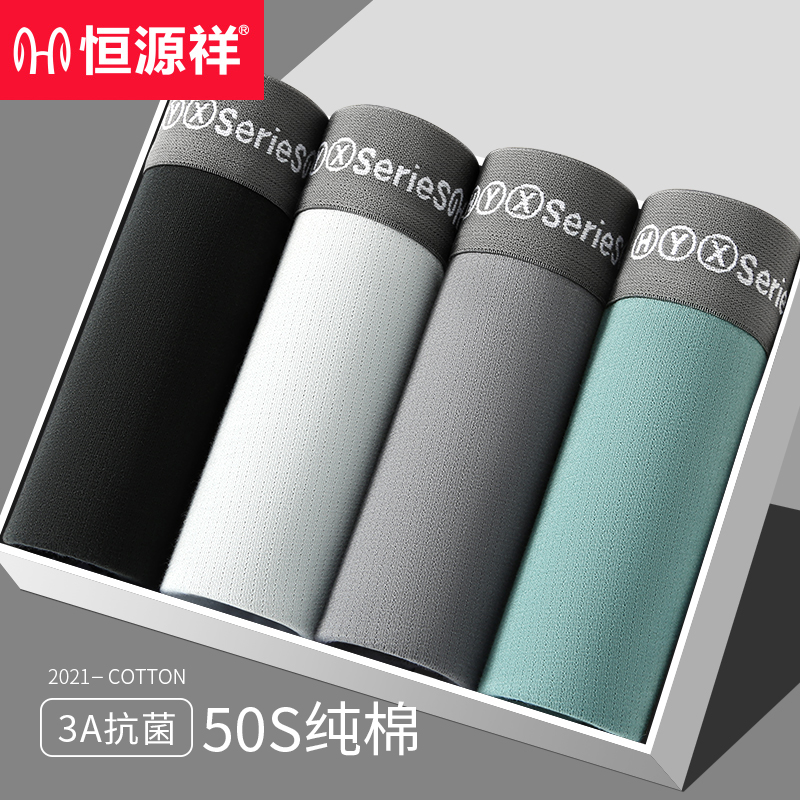 【产品名称:恒源祥纯棉男士内裤平角抗菌网眼四角短裤青少年全棉宽松大码透气】