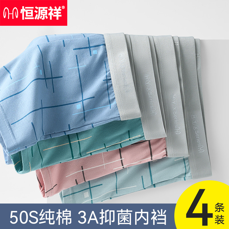 【产品名称:恒源祥内裤男四角夏季男款短裤抗菌纯棉裤头裤衩儿平角裤透气抑菌】