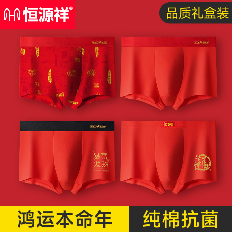 【产品名称:恒源祥男士内裤男生纯棉四角裤本命年红色新款短裤夏季男款平角裤】