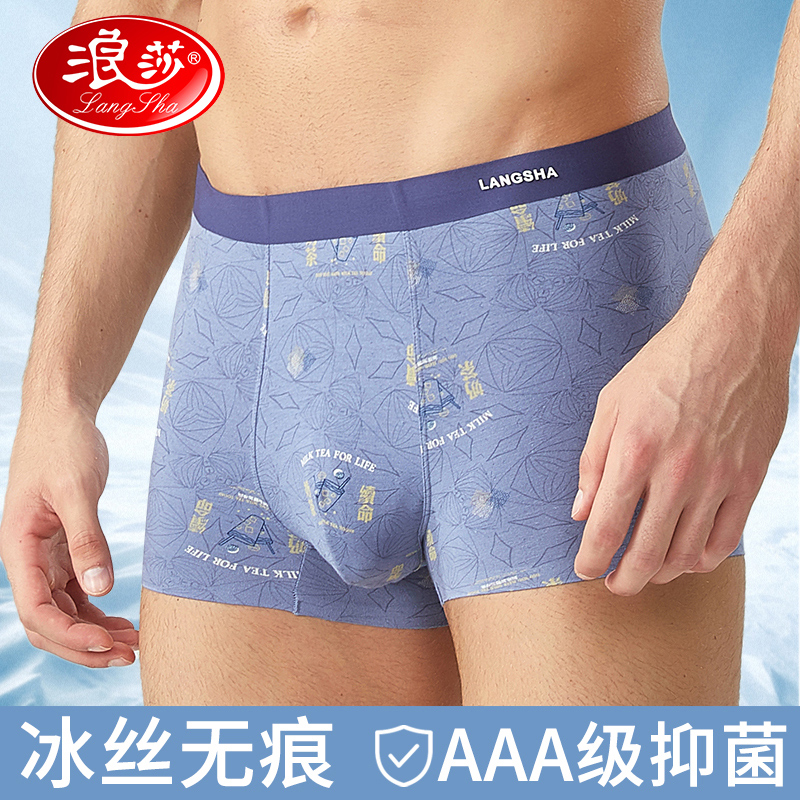 【产品名称:浪莎莫代尔内裤男青少年冰丝抗菌无痕印花平角裤头大码四角短裤头】
